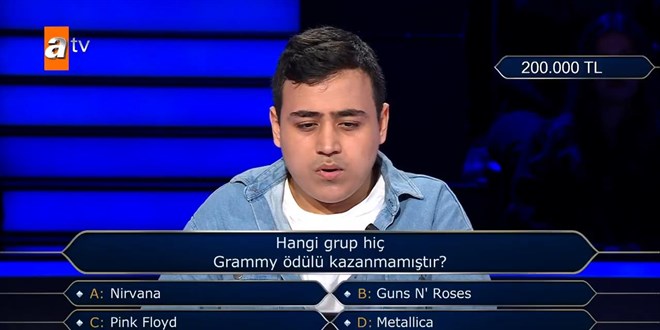 Hangi grup hiç Grammy ödülü kazanmamıştır? ATV’de Oktay Kaynarca’nın sunumuyla ekranlara gelen "Kim Milyoner Olmak İster" yarışmasında heyecan dolu anlar yaşandı