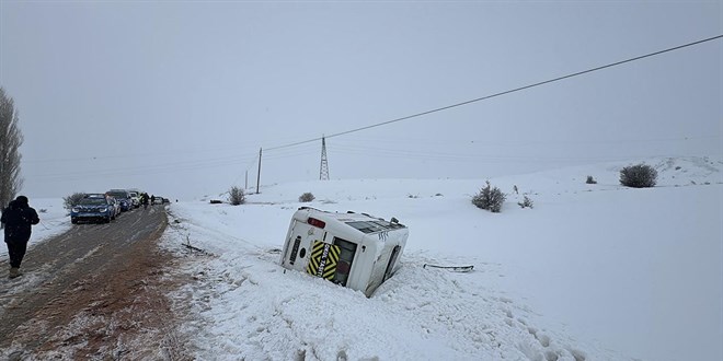 Sivas'ın Yıldızeli ilçesinde etkili olan kar ve buzlanma nedeniyle öğrenci servisi devrildi. Yaşanan kazada ilk belirlemelere göre 10 kişi yaralandı.