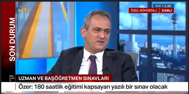 Milli Eğitim Bakanı Mahmut Özer, NTV canlı yayınında soruları yanıtladı. Özer: Daha önce sınav kaldırılsın diye bir talep oldu. Biz öğretmenlerimizin becerilerini sürekli gelişktirmek, lisansüstü eğitime teşvik etmek istiyoruz. Bunun için biz uzman öğretmenlikte, 10 yılı tamamlamış öğretmenlerimize en az 180 saatlik bir eğitim öngörüyoruz. Ardından yazılı bir sınav yapılacak. Ancak, öğretmen yüksek lisansını tamamlamışsa, uzman öğretmenlik sınavında, doktorasını tamamlamışsa baş öğretmenlik sınavından muaf tutulacak.